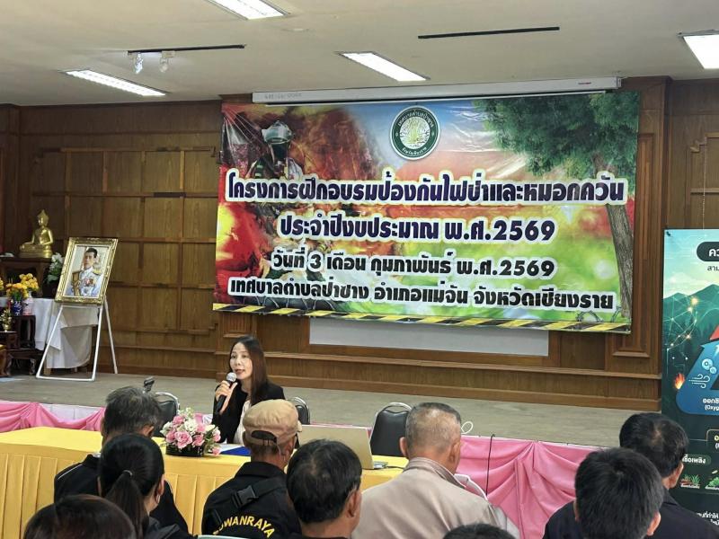 วันที่ 3 กุมภาพันธ์ 2569 งานป้องกันและบรรเทาสาธารณภัย สำนักปลัด เทศบาลตำบลป่าซาง โดยนายโชคเอก พาณิชญากิจ (นายกเทศมนตรีตำบลป่าซาง) มอบหมายให้ นางสิริพร ขะขอม (รองนายกเทศมนตรีตำบลป่าซาง ) เป็นประธานเปิดโครงการฝึกอบรมป้องกันไฟป่าและหมอกควัน ประจำปี 2569 โดยมีเจ้าหน้าที่ไฟป่าจากพระตำหนักดอยตุง มาเป็นวิทยากรอบรมให้ความรู้ทั้งภาคทฤษฏีและภาคปฏิบัติ ณ ศูนย์หัตถกรรมและฝึกวิชาชีพตำบลป่าซาง และพื้นที่ป่าชุมชน บ้านร่องคี หมู่ที่1 เทศบาลตำบลป่าซาง อำเภอแม่จัน จังหวัดเชียงราย    (ดู 3 ครั้ง)